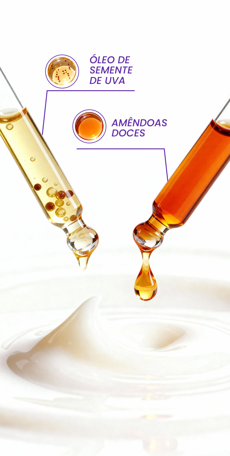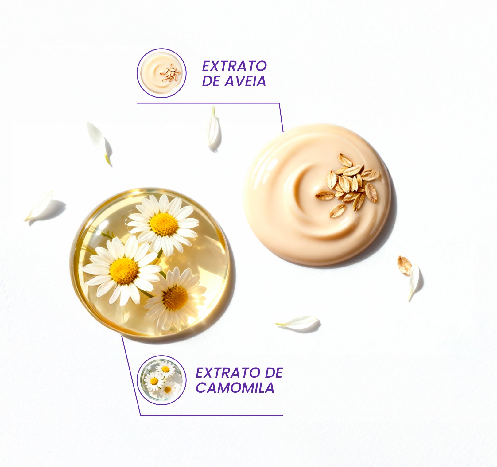 Composição (Inglês): Aqua; Retinyl Palmitate; Propylene Glycol; Carbomer; Ceteareth 20; Methylparaben; Propylparaben; BHT; Disodium EDTA; Imidazolidinyl Urea; Cetearyl Alcohol; Sodium Hydroxide; Urea; Prunus Amygdalus Dulcis Oil; Chamomilla Recutita Flower Extract; Vitis Vinifera Seed Oil; Avena Sativa Seed Extract; Parfum; Hexyl Cinnamal; Linalool; Hyaluronic Acid; Acacia Senegal Gum Extract; Phenoxyethanol; Caprylyl Glycol.