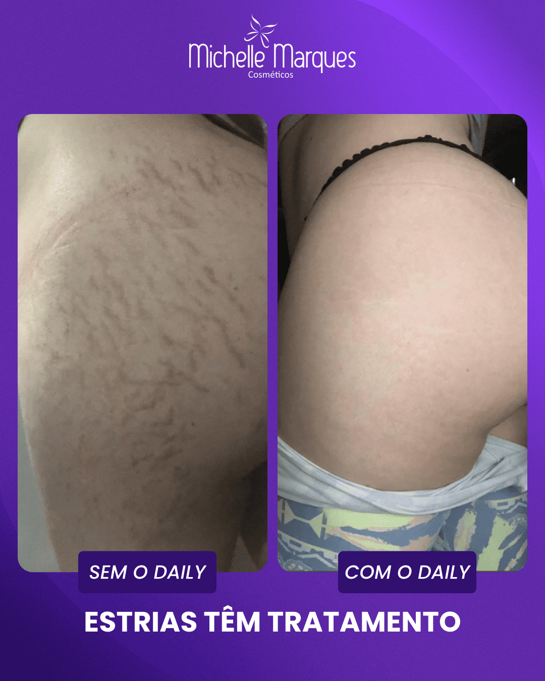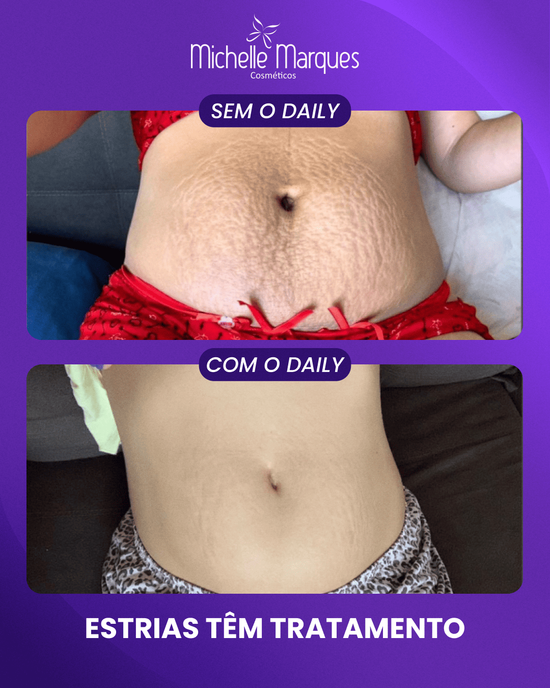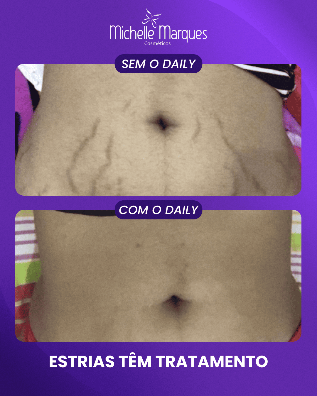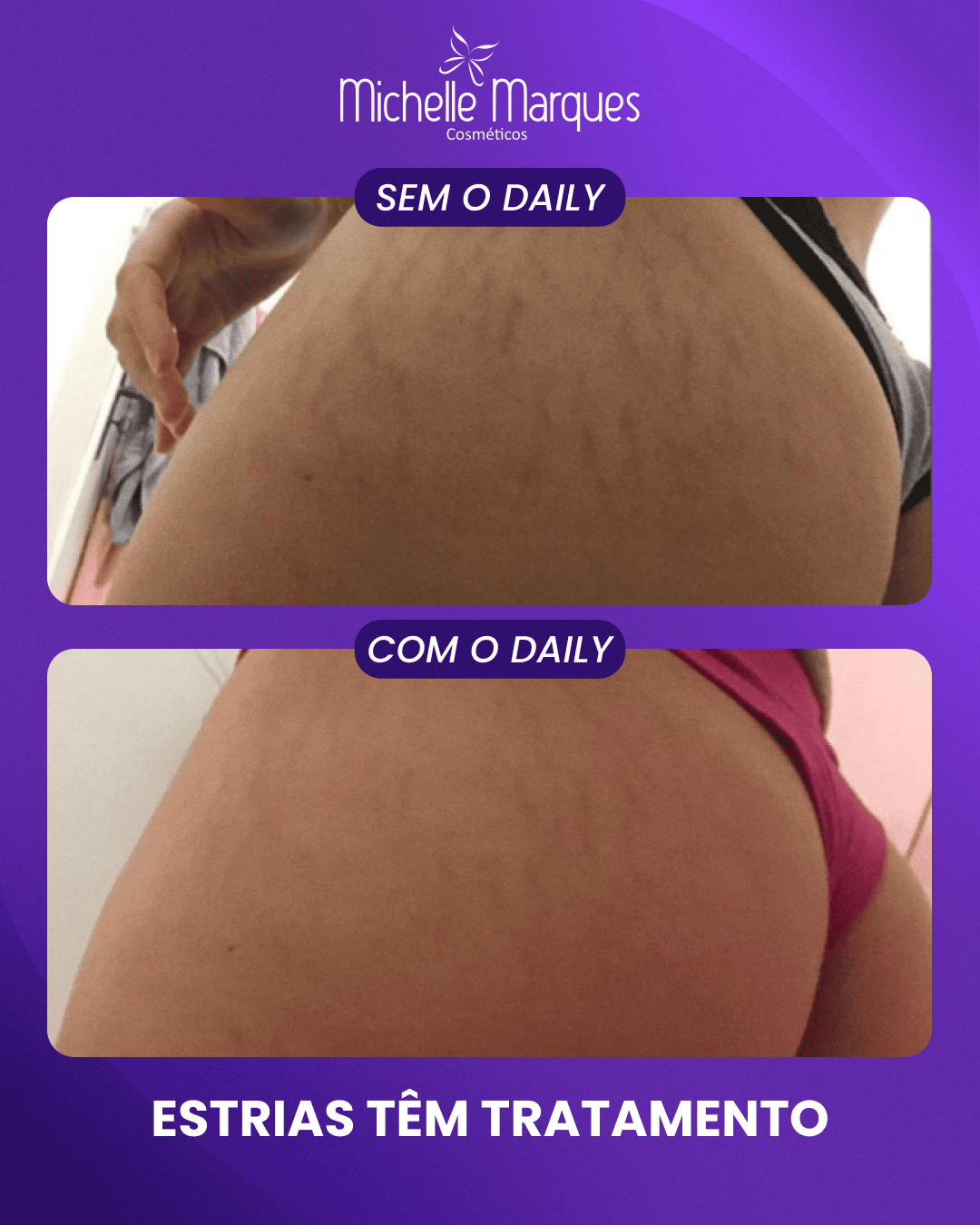 O Daily Tratamento é ideal para quem já possui estrias, e o Daily Prevenção é o aliado perfeito para quem deseja manter a pele protegida e saudável.