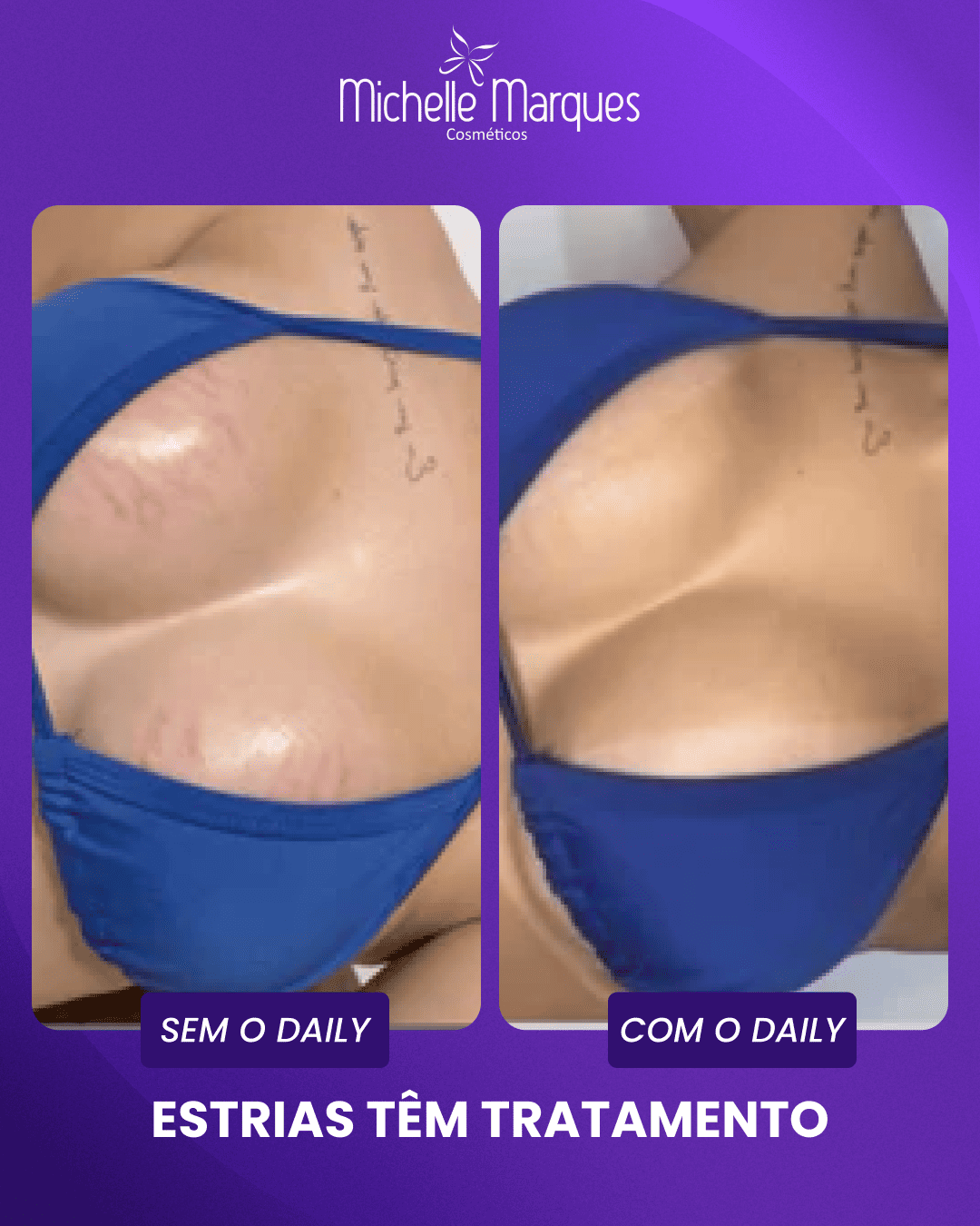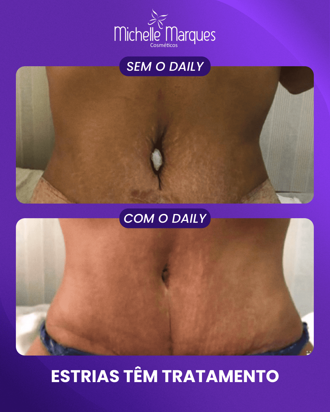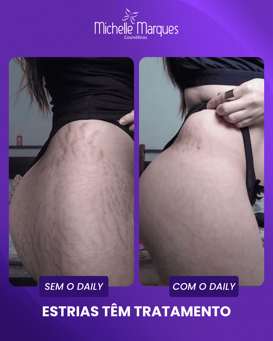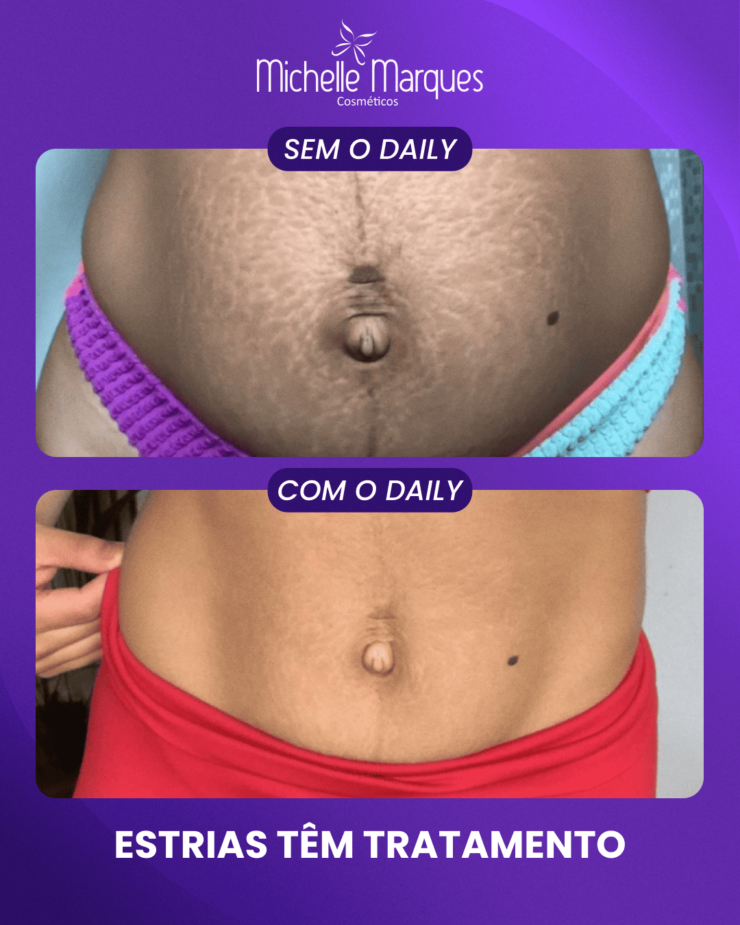 O Daily Tratamento é ideal para quem já possui estrias, e o Daily Prevenção é o aliado perfeito para quem deseja manter a pele protegida e saudável.