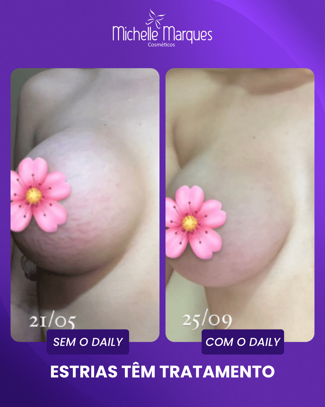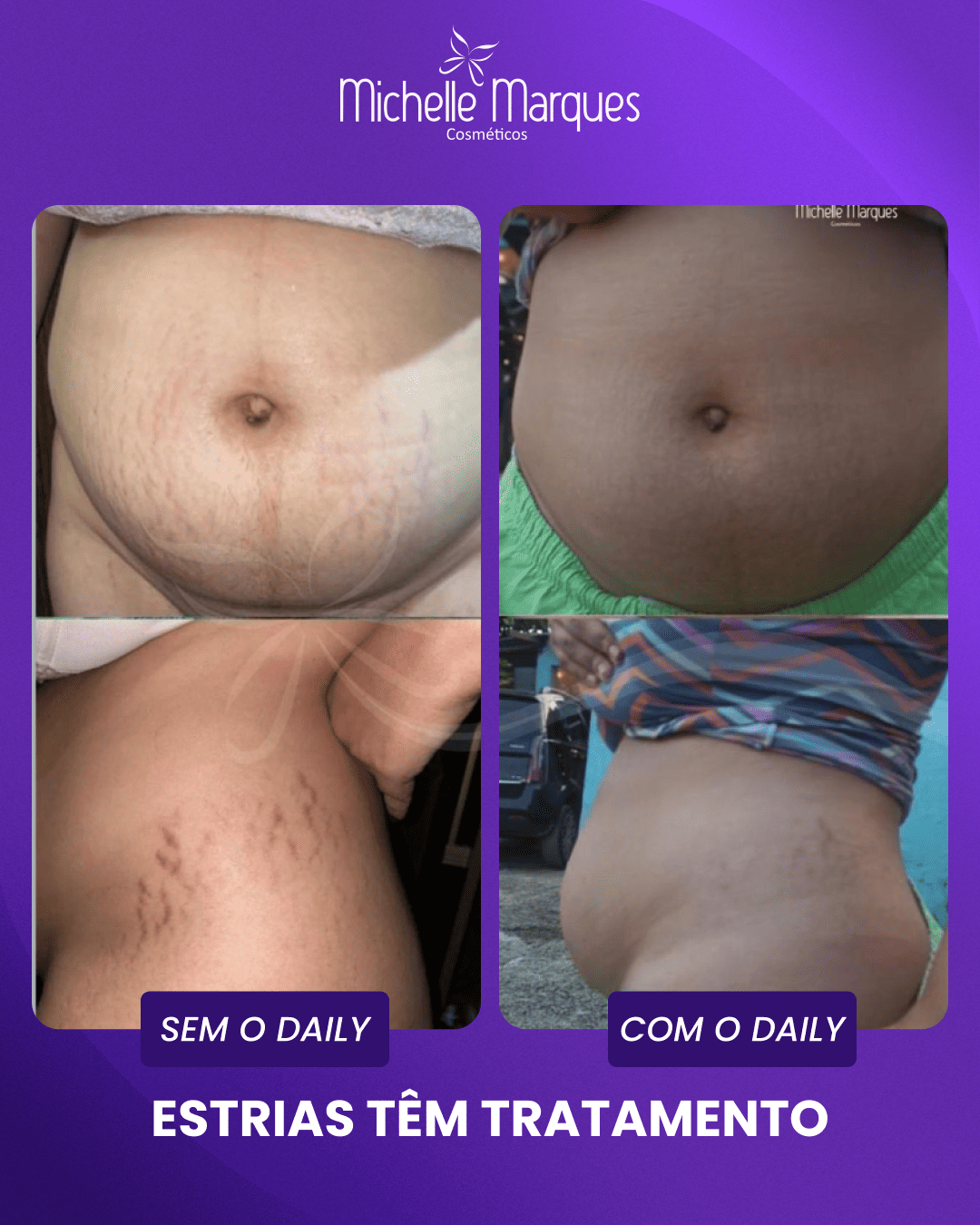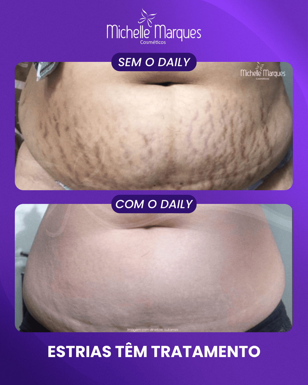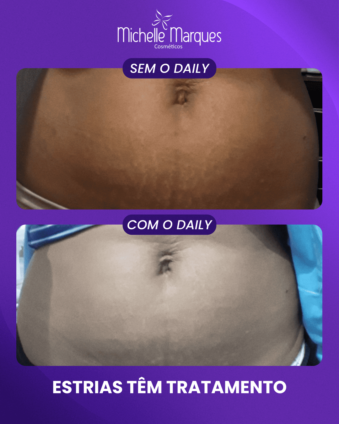 O Daily Tratamento é ideal para quem já possui estrias, e o Daily Prevenção é o aliado perfeito para quem deseja manter a pele protegida e saudável.